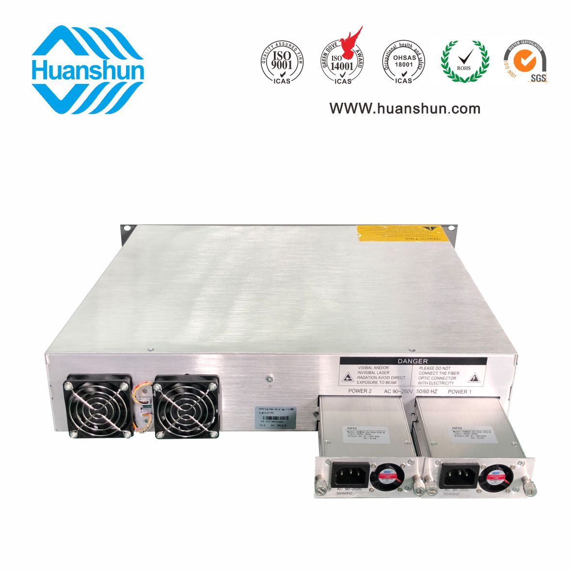 YGF1532-XXC室內(nèi)型結(jié)構(gòu)采用全鋁材機箱,表面氧化拉絲工藝;JDSU等世界著名半導體公司出品的多模大功率泵浦激光器作為泵浦源,美國OFS合束器作為雙包層合成器。機器內(nèi)設光功率輸出穩(wěn)定電路及激光器熱電致冷器能穩(wěn)定工作。微處理器軟件對激光器的工作狀態(tài)進行監(jiān)控,工作參數(shù)由數(shù)字面板(LCD)顯示。一旦激光器的工作參數(shù)偏離軟件設定的允許范圍,微處理將自動關(guān)斷激光器電源,紅燈閃爍提示告警,數(shù)字面板提示故障原因。