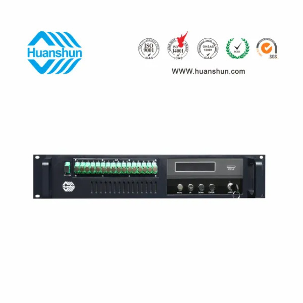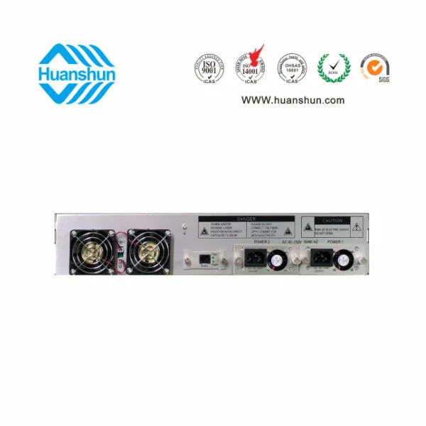 大功率光纖放大器 | YGF1516-16 | 19 " 2U/3U標(biāo)準(zhǔn)機箱,-5 ~ +10 d Bm輸入,16路標(biāo)稱規(guī)格(16、17、18、19、20、21、22、23、24dBm)放大輸出,并支持下調(diào)-2dB,安全連接模式,NF ≤ 5dB(0dBm時);內(nèi)置FWDM合波器,插播損耗 ≤ 1dB;雙模塊熱插撥電源,AC90 ~ 255V或DC-48V供電,RJ45標(biāo)準(zhǔn)網(wǎng)管(支持SNMP、WEB) |