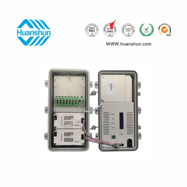 野外型防水結構,-5 ~ +10 d Bm輸入,8路標稱規格(18、19、20、21、22dBm)放大輸出,并支持下調-2dB,安全連接模式,NF ≤ 5dB(0dBm時);雙電源AC90 ~ 255V供電或AC35 ~ 75V饋電,RJ45標準網管(支持SNMP、WEB)