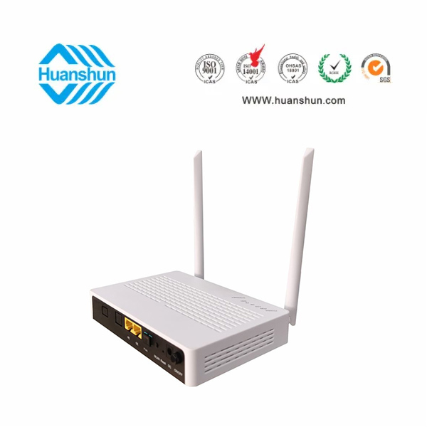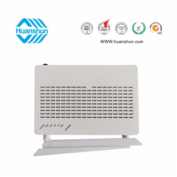 G/EPON ONU, PON端口接入,1GE+1FE網絡接口,2*2 2.4G WIFI(外置天線300Mbps),工作波長1310/1490nm,發送功率1~4dBm,接收功率-27dBm;外置90~255V-12V 1A電源適配器