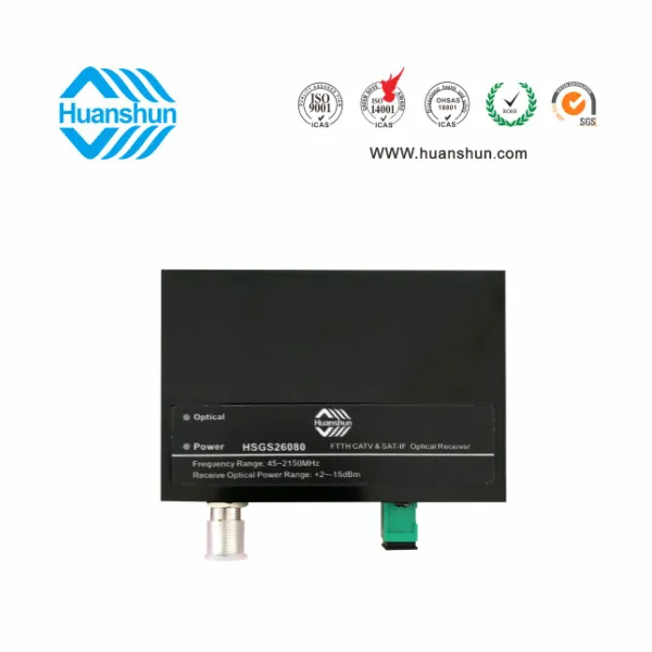 CATV&SAT-IF光接收機 | HSGS26080 | RF工作帶寬45~2150MHz,光工作波長1290~1600nm,光接收功率-8~0dBm/RF CATV80dBuv,SAT-IF65-75dBuv,RF接口F型公制或英制(訂貨時說明),光輸入接口SC/APC |